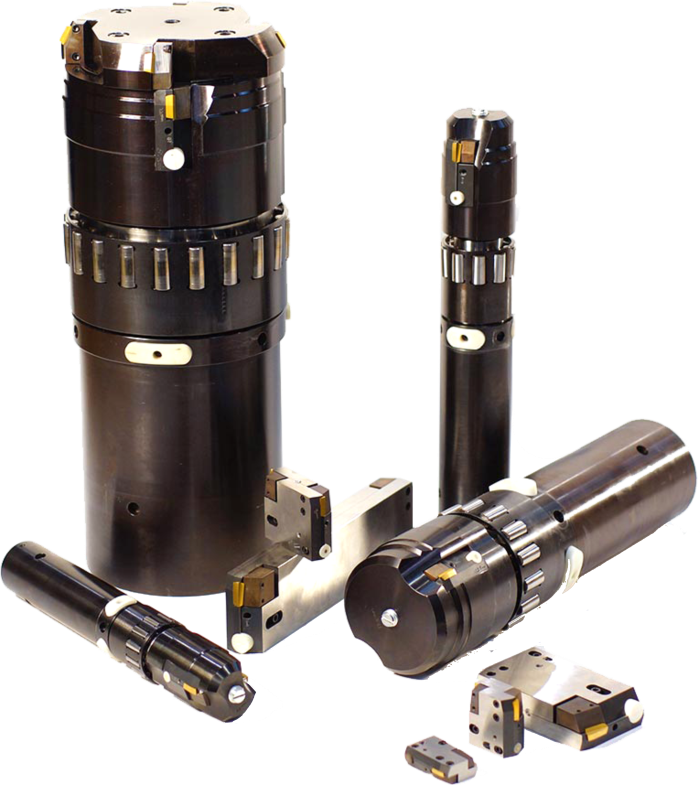 ?采用4+4刀片切削,通過(guò)4塊硬質(zhì)合金導(dǎo)向鍵支撐確保鏜刀頭無(wú)游隙移動(dòng)
